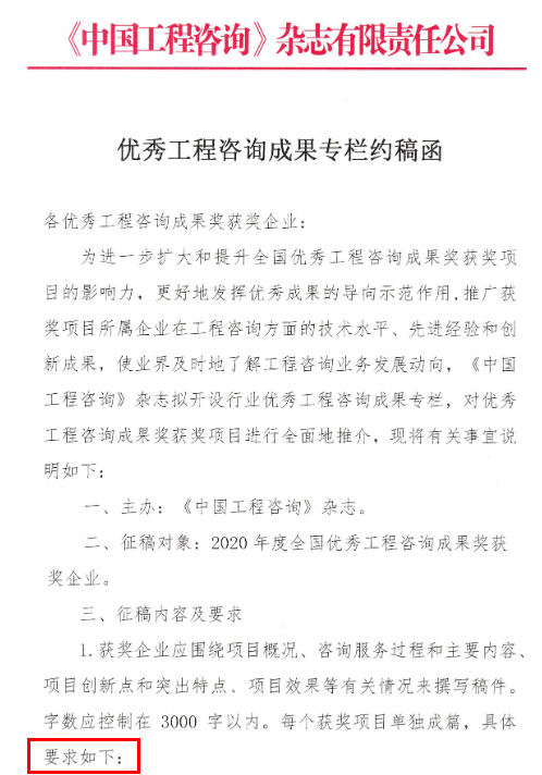 浙江工程咨詢協(xié)會(huì)優(yōu)秀工程咨詢成果專欄約稿函