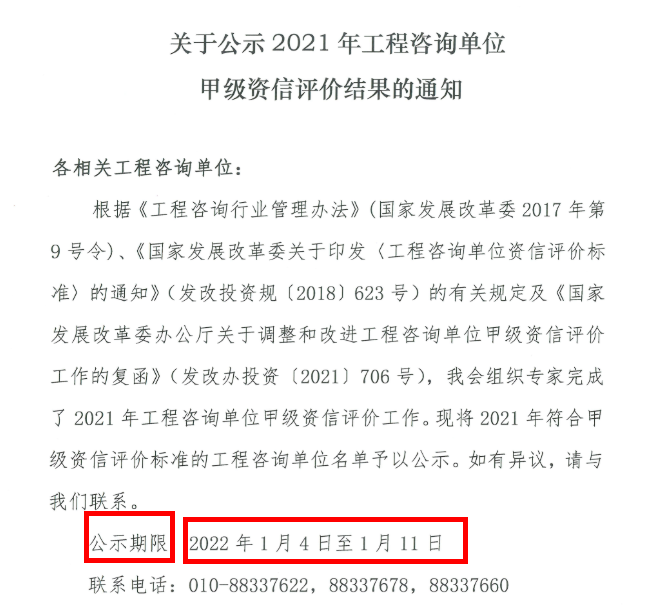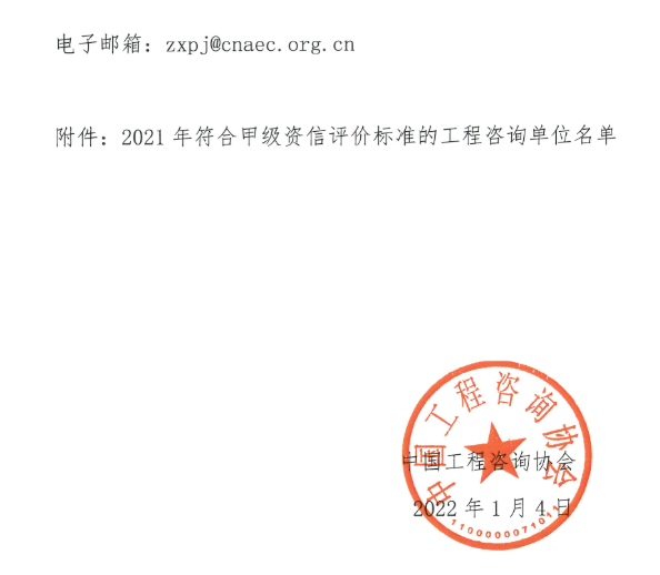 中國(guó)工程咨詢協(xié)會(huì)關(guān)于公示2021年工程咨詢單位甲級(jí)資信評(píng)價(jià)結(jié)果的通知
