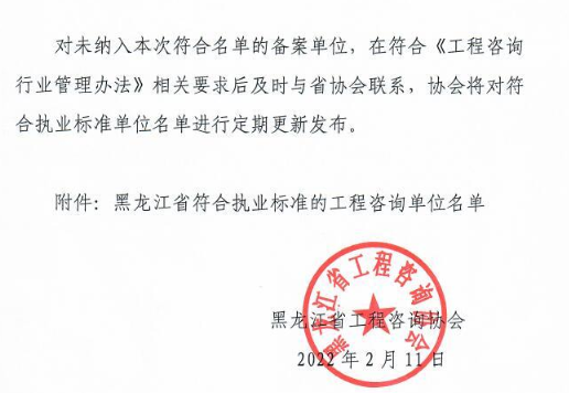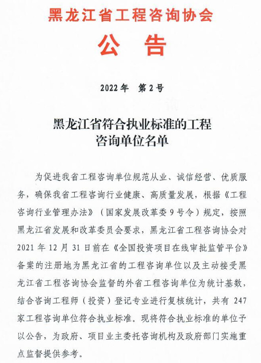 黑龍江省工程咨詢協(xié)會(huì)公告2022年第2號(hào)