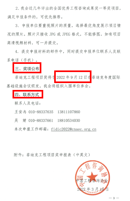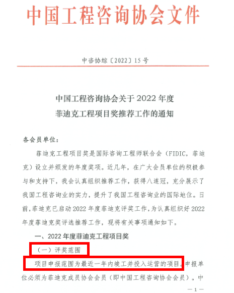 中國工程咨詢協(xié)會(huì)關(guān)于2022年度菲迪克工程項(xiàng)目獎(jiǎng)推薦工作的通知