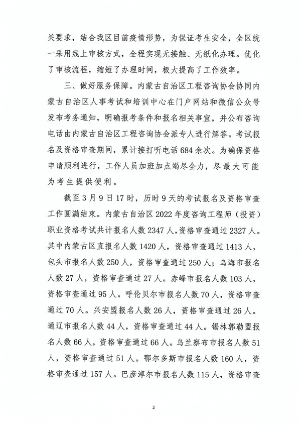 內(nèi)蒙古2022年咨詢工程師考試報名及資格審查工作圓滿完成