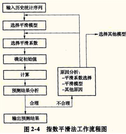 A.輸入歷史統(tǒng)計(jì)序列→預(yù)測(cè)結(jié)果分析→選擇平滑系數(shù)→確定初始值