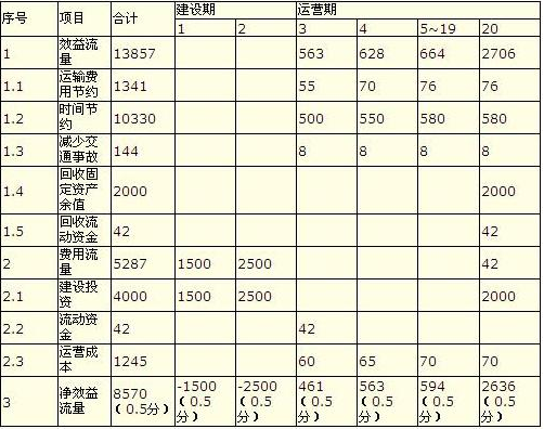 B咨詢公司通過現(xiàn)場訪談?wù){(diào)查和專家調(diào)查,獲得了大量的項目基礎(chǔ)信息,編制了項目經(jīng)濟費用效益相關(guān)數(shù)據(jù)表(見下表),項目計算期20年,社會折現(xiàn)率為10%