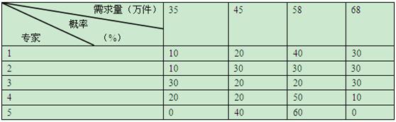 某組織5位專家進行產(chǎn)品需求量預(yù)測,預(yù)測數(shù)據(jù)見下表。則需求量預(yù)測的期望值是()萬件。(2013年試題)