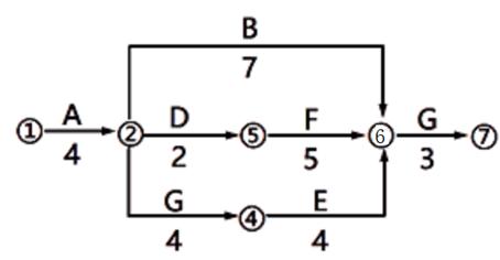【答案解析】 本題考查的是工程項目進度計劃。關鍵線路為①-②-④-⑥-⑦,工作D與關鍵工作平行,8-7=1.參見教材P243.